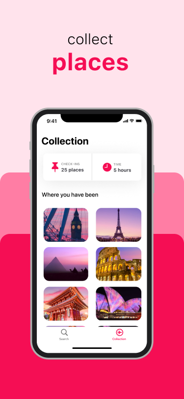 3. Badge system: a collection of places where the user has been using the app, and badges to reward and keep them motivated.