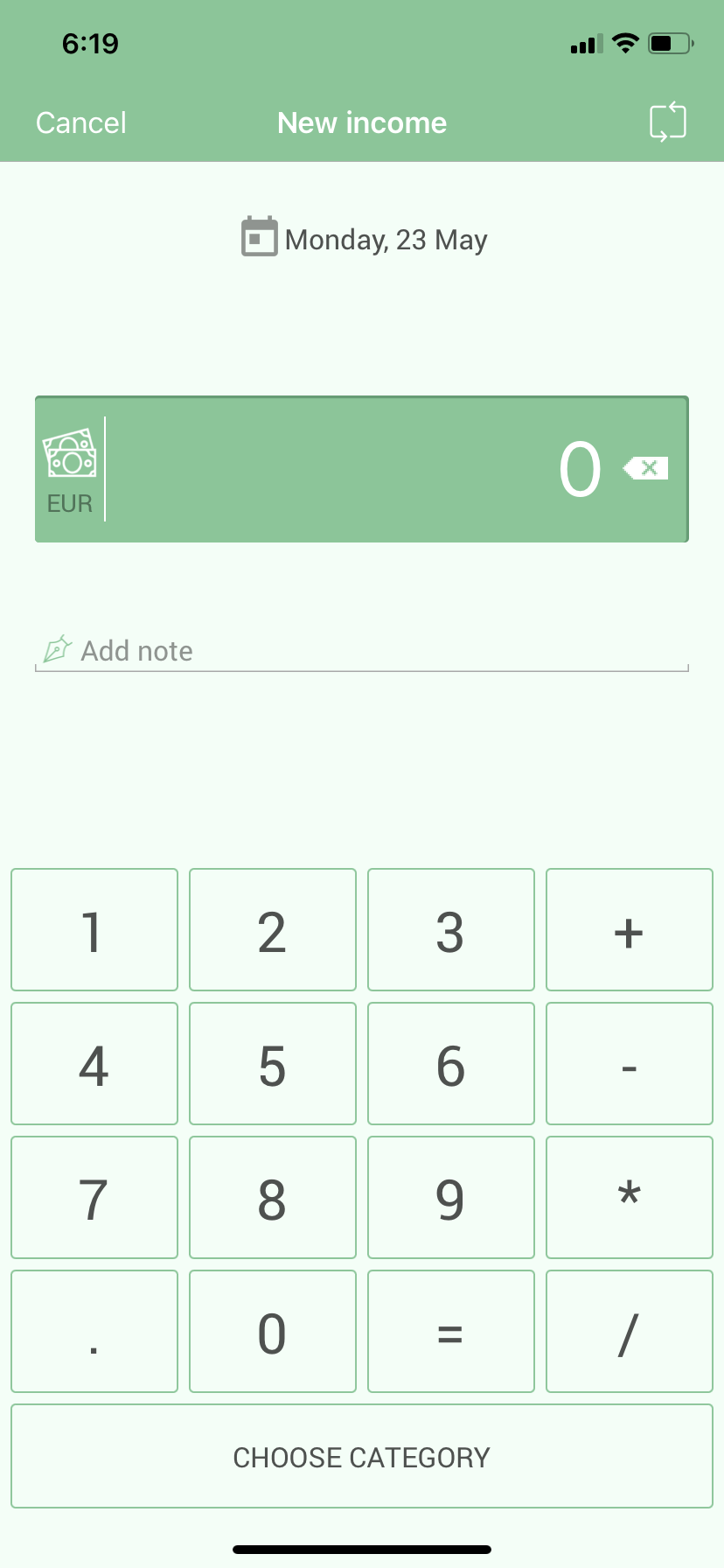 - A single button to add new transactions replaced the old two buttons, and it opens a modal view istead of a new screen.